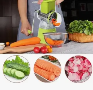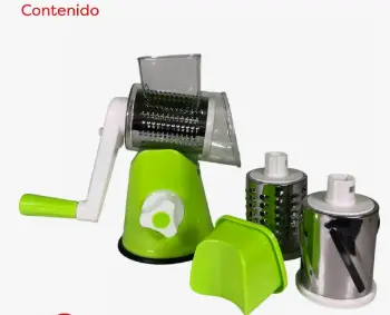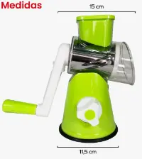 Cortadora de Verduras Multifunción con Manivela Práctica y eficiente, esta cortadora manual te permite rallar, rebanar y cortar verduras de manera rápida y sin esfuerzo. Incluye 3 tambores de acero inoxidable intercambiables, diseñados para diferentes tipos de corte: fino, grueso y en láminas.