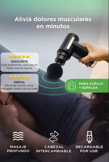 La Pistola Masajeadora está diseñada para aliviar dolores musculares, mejorar la recuperación después del ejercicio y acompañar procesos de rehabilitación física.